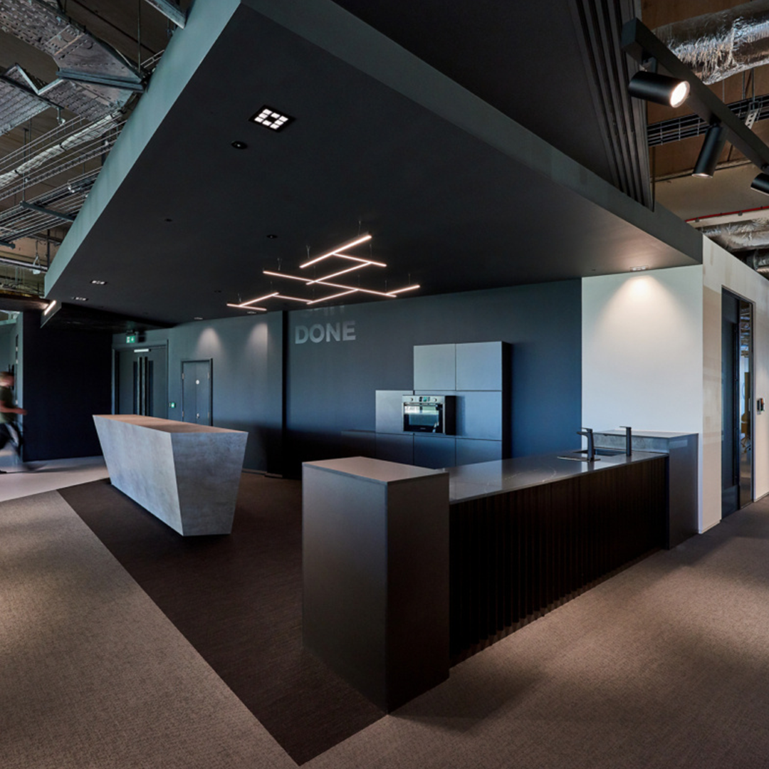 Featuring Billi Taps at refreshment points throughout the workplace. The stylish matt black taps compliment the interiors perfectly. Delivering instant boiling, chilled & sparkling water to their employees and guests.