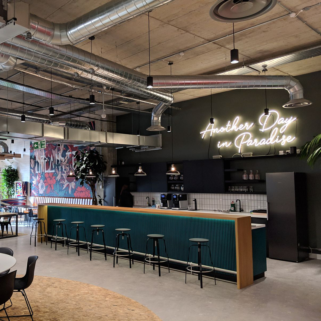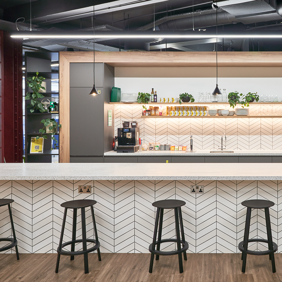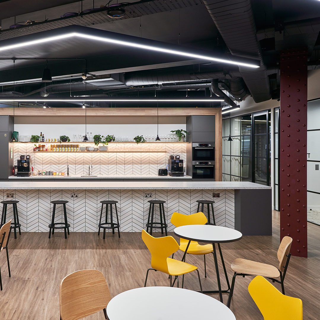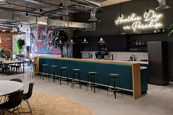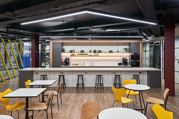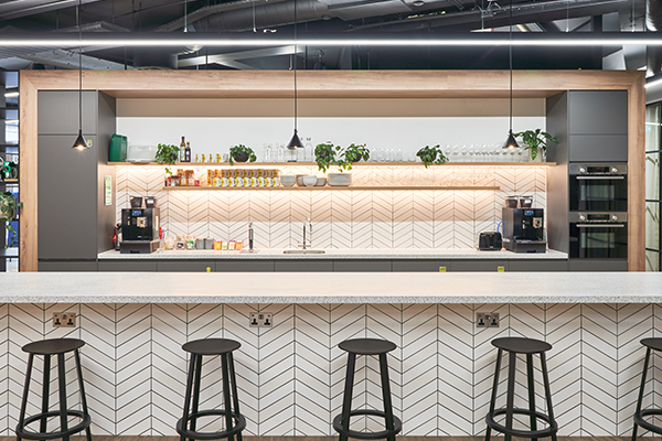 Bold design aesthetics throughout the work and break-out spaces, designed to stimulate and encourage creativity and inspiration. Our task was to supply refreshment solutions to inspire hydration for their staff.