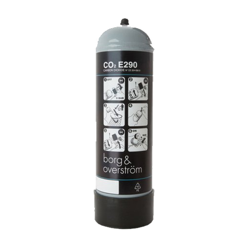 1300g CO2 E290 Cylinder. For use with all Borg & Overström sparkling water systems to create that deep refreshing sparkle. The cylinder can be disposed of in standard steel recycling or general waste. (Requires Co2 regulator with gauge)